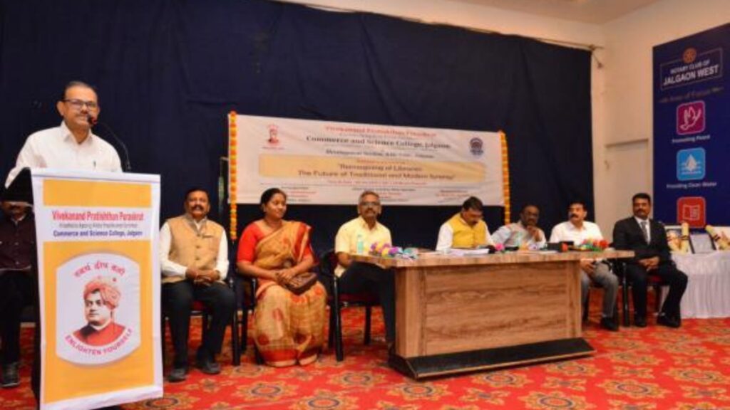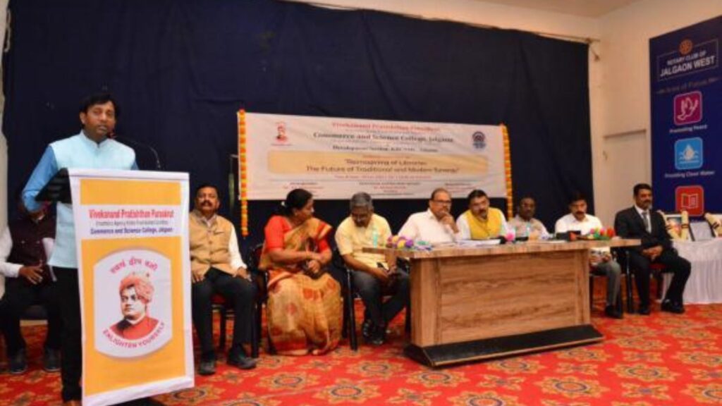 On 4th January 2025, a National Conference on “Reimagining Libraries: The Future of Traditional and Modern Synergy” was organized by Khashaba Apang Krida Prashikshan Sanstha’s Commerce and Science College, Jalgaon, in collaboration with Vivekananda Foundation and KBC North Maharashtra University.